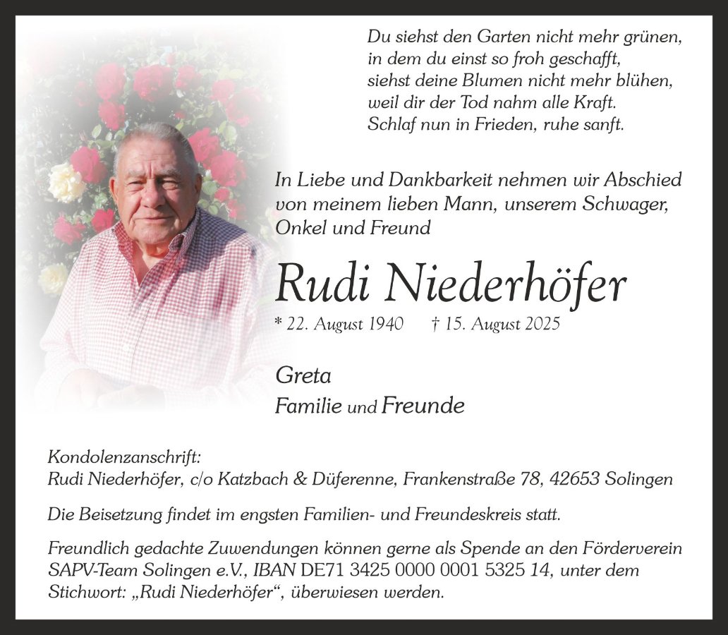 wir wünschen Ihnen von Herzen viel Kraft, dass Sie Menschen um sich haben, die Ihnen in dieser schweren Zeit beistehen und Halt geben. Zusätzlich können Sie auf dieser Gedenkseite Erinnerungen teilen und so das Andenken gemeinsam wachhalten.